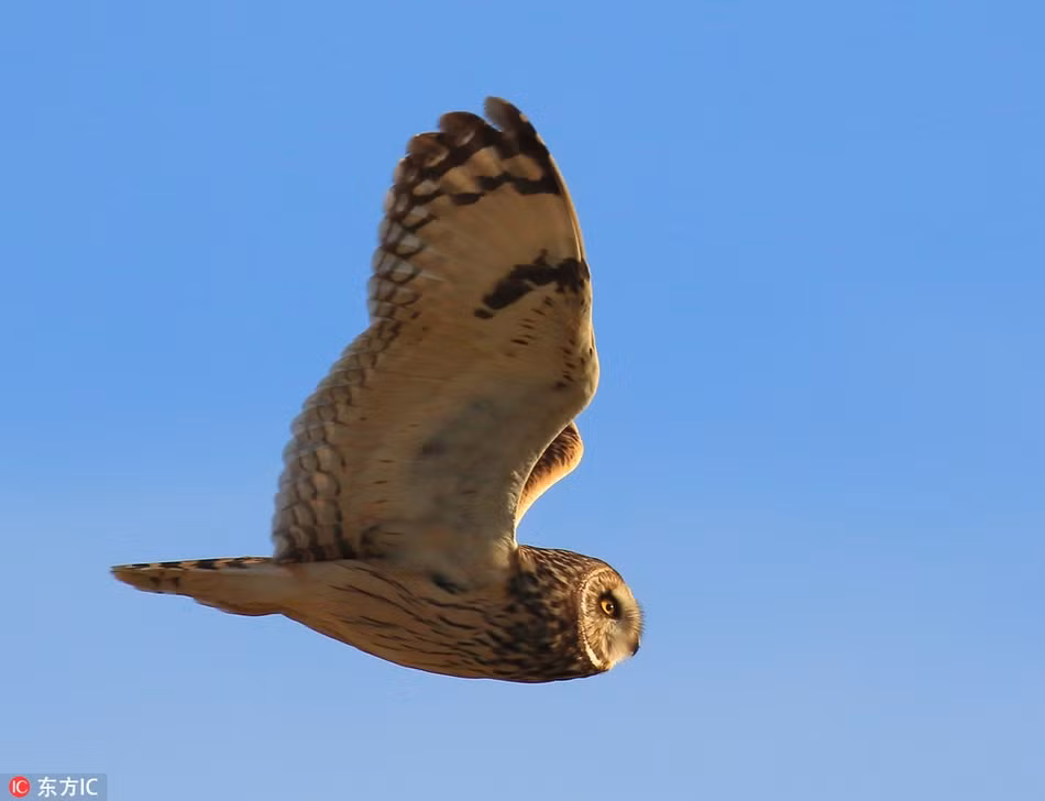 Ngay cả khi phát hiện ra bản thân được nhiếp ảnh gia chú ý, con cú mèo đáng yêu vẫn không hề giảm tốc độ bay của mình.