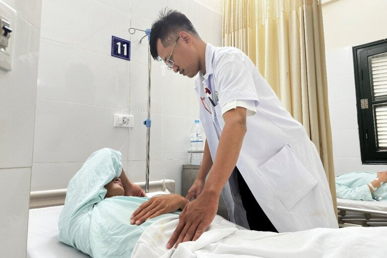 Bác sĩ Khánh đang thăm khám cho bệnh nhân sau mổ. Ảnh: BVCC.