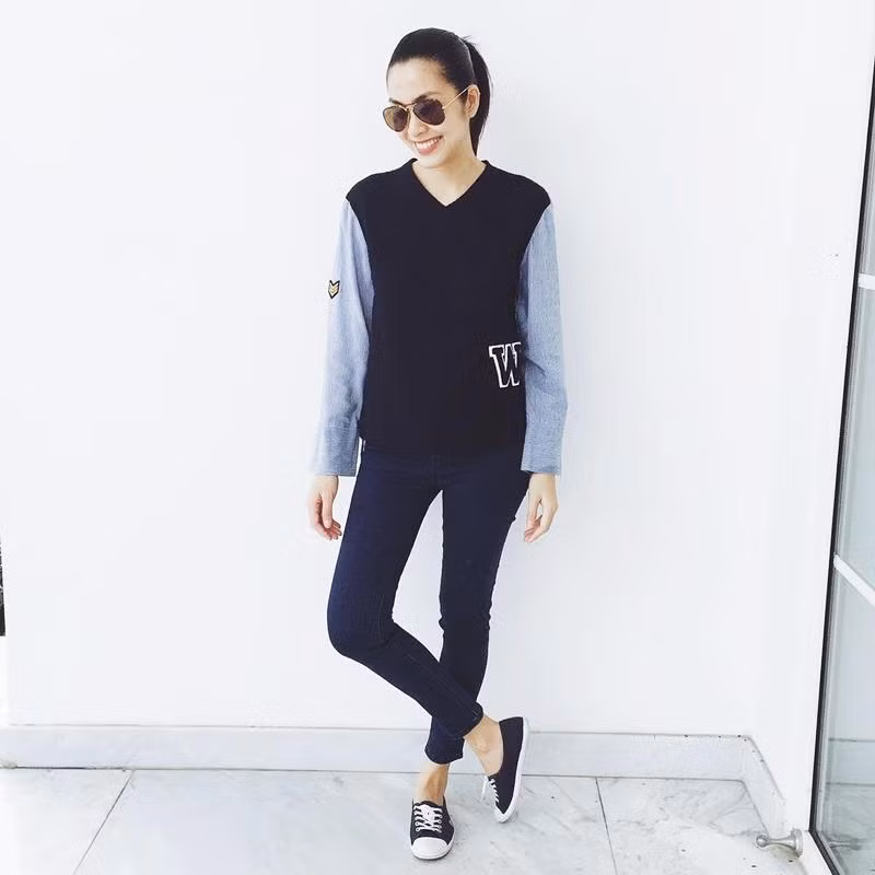 “Nàng thơ” của làng điện ảnh Việt khoe vẻ năng động với chiếc đầm suông đen cảm hứng tối giản. Thật khó để nhận ra nữ diễn viên đang trải qua quãng thời gian bầu bí.