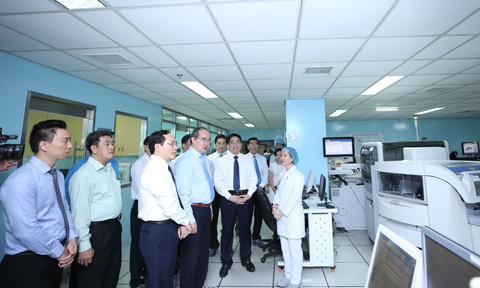 | Bí thư Nguyễn Thiện Nhân thăm hỏi người bệnh đang nằm điều trị nội trú tại bệnh viện. |