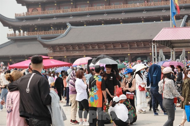 Ngày 14/3, hơn 70 nghìn du khách thập phương kéo về khu du lịch tâm linh Tam Chúc (Hà Nam) tham quan, khiến các điểm bán vé và giao thông quanh khu vực quá tải.
