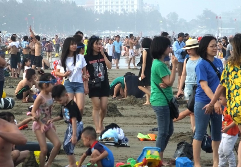 | Người dân chen chân đổ về Sầm Sơn trong ngày đầu kỳ nghỉ lễ. |
