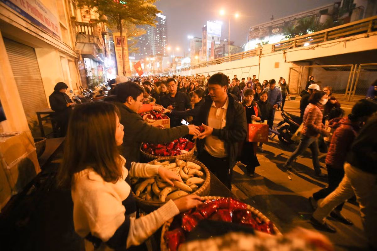 (Kiến Thức) - Số lượng người tham gia buổi lễ giải hạn sao La Hầu tại chùa Phúc Khánh tối qua 12/2 (tức mùng 8 Âm lịch) đông tới mức ngồi tràn ra một đon đường Tây Sơn khiến giao thông ùn ứ.