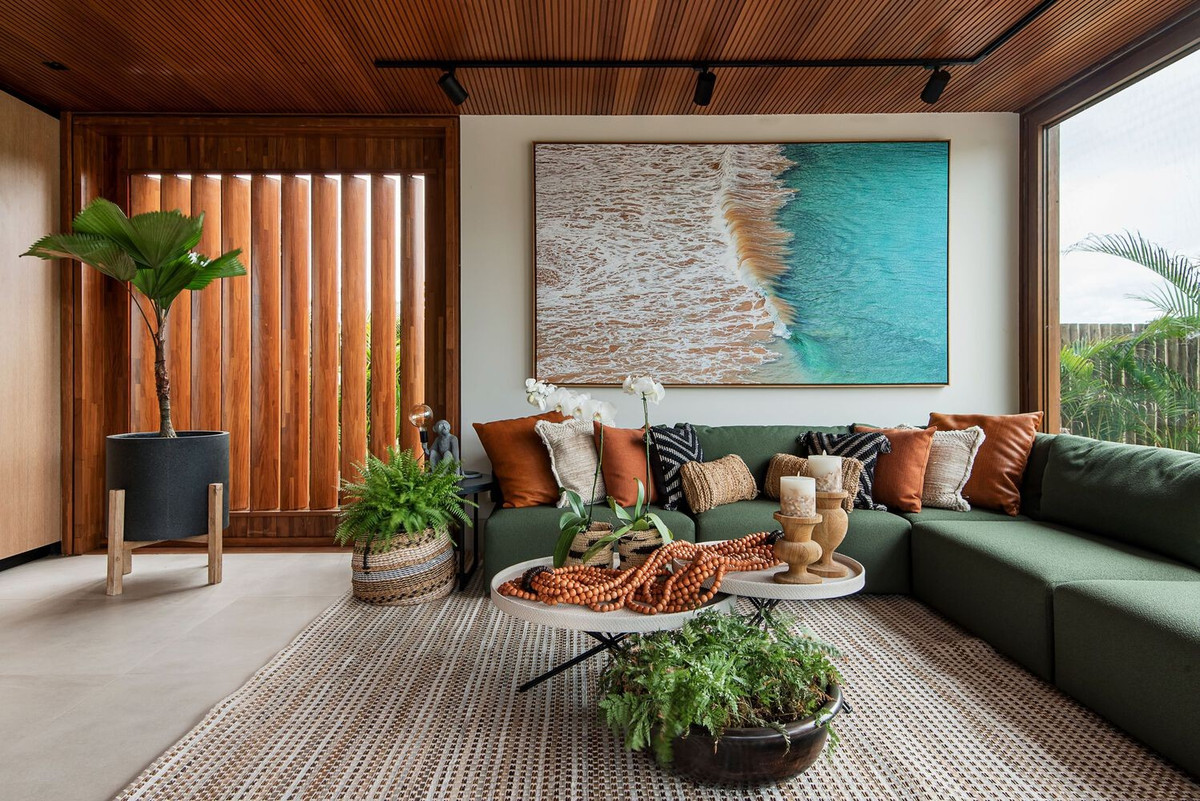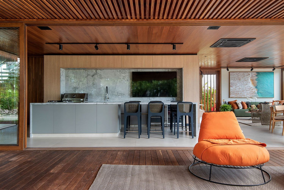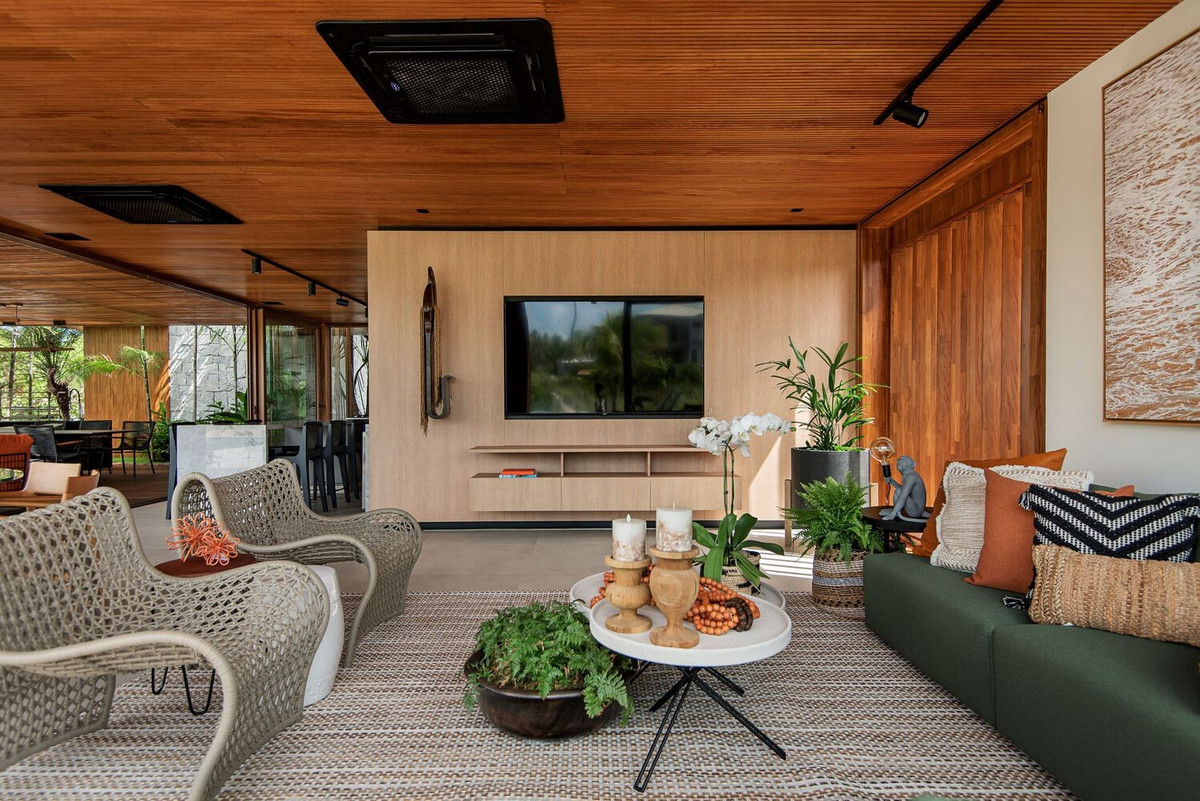 Ngôi nhà sử dụng gỗ làm vật liệu chủ đạo để tạo cảm giác ấm cúng và gần gũi.