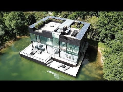 Với mục tiêu gắn kết ngôi nhà với thiên nhiên, cửa ở các phòng khách, nhà bếp, nhà tắm và các phòng ngủ được làm hoàn toàn bằng kính, bên trong có thể nhìn rõ cảnh quan bên ngoài, từ bên ngoài mặt kính phản chiếu được cả mặt hồ và mây trời.