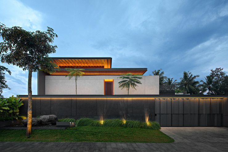 Mặt tiền được thiết kế với các yếu tố vững chắc để mang lại sự riêng tư và an toàn cho ngôi nhà vì vị trí vắng vẻ của nó.