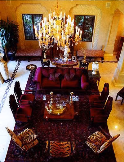 Căn biệt thự sang trọng 3 tầng được thiết kế hoàn toàn theo phong cách phương Tây, với trần nhà, cầu thang, phòng tắm, sân thượng, quầy bar hay thang máy đều được phủ một lớp vàng mạ 24k lấp lánh.