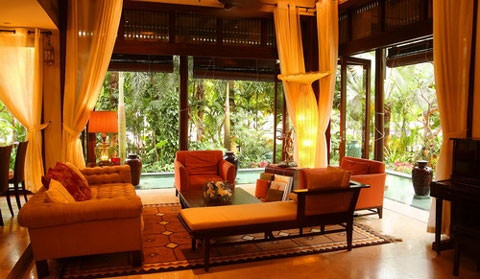 Ngoài nội thất lung linh, chủ nhân của ngôi nhà cũng rất biết cách đan cài thêm cây lá để tạo không gian gần gũi. Ngôi nhà cũng được thiết kế một phòng ăn sang trọng hơn cả khách sạn 5 sao đắt giá nhất với những chiếc ly có giá trên 1.000 USD/cái và một hầm rượu luôn ở nhiệt độ 18 độ C để rượu luôn tươi mới. Chưa hết, căn nhà cũng được trang bị một phòng chiếu phim mini với dàn âm thanh và ánh sáng nhập từ Mỹ cùng chiếc màn hình 200inch.