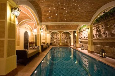 Căn nhà không quá lớn nhưng có đầy đủ hồ bơi, vườn cảnh cùng nội thất sang trọng mang phong cách hoàng gia châu Âu.