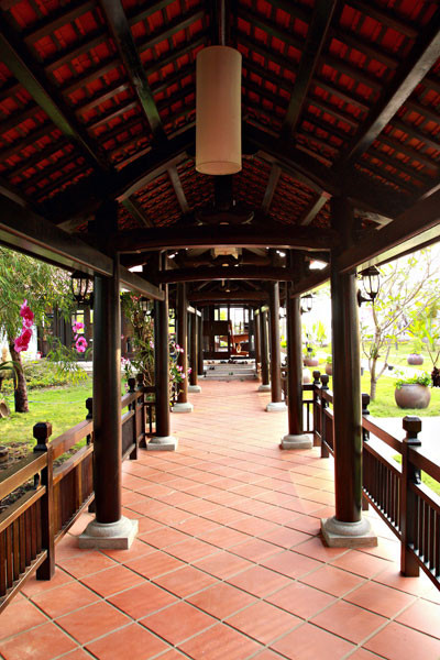 Chủ nhân tiết lộ, điểm nhấn của ngôi nhà là giếng trời. Các vách giếng là những bức phù điêu Chămpa được thực hiện công phu, bao quanh giếng trời là những khung kính lớn trong suốt, tạo nên bức tranh sinh động cho mỗi tầng.