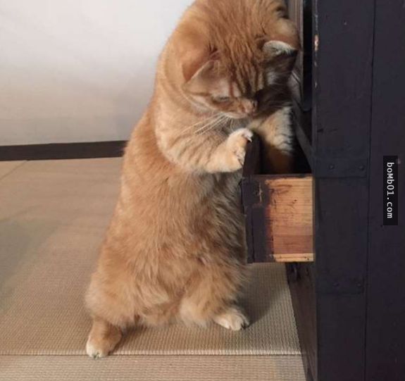 | Không ngờ một ngày đi làm về, anh thấy chú mèo cưng của mình đang thò tay lục tìm túi cá. |