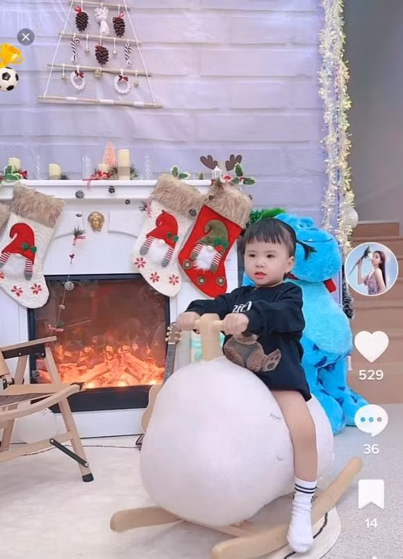 Ái nữ nhà Thiên An cũng lên đồ đón Giáng sinh, nét mặt vô cùng đáng yêu.