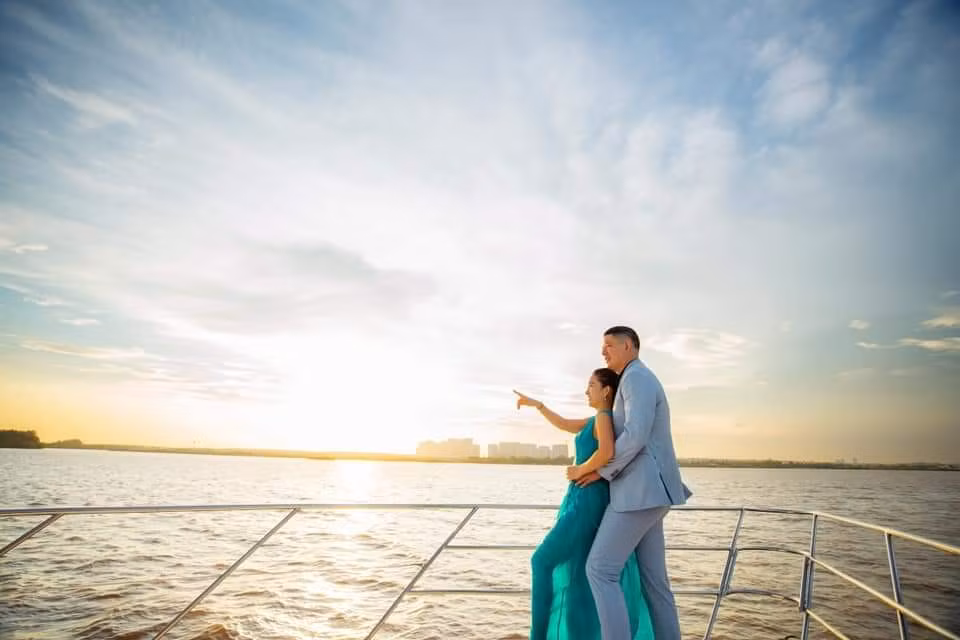 Vợ doanh nhân của cựu mẫu Bình Minh đăng ảnh cả hai "trốn con" đi nghỉ dưỡng tại du thuyền sang trọng.