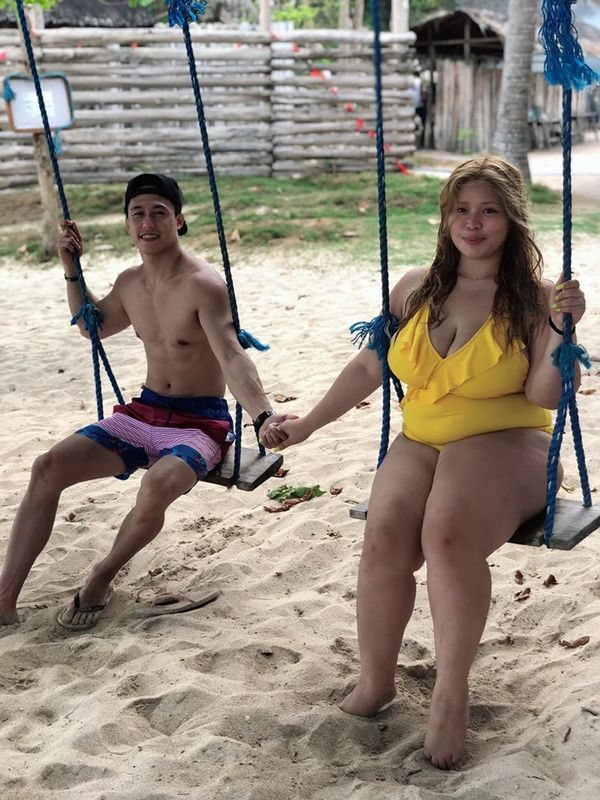 Ngay từ bức ảnh đầu tiên, có thể thấy cặp đôi có một sự "lệch pha" không hề nhẹ. Trong khi chàng trai sở hữu vóc dáng khỏe khoắn, 6 múi nam tính, thì cô gái lại mập mạp. Khi đứng cạnh nhau, trông họ không khác gì số 10.