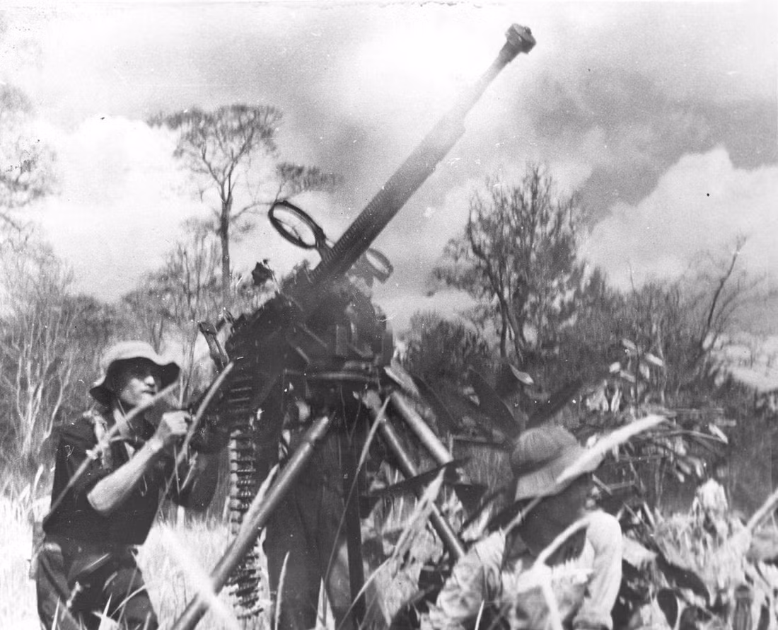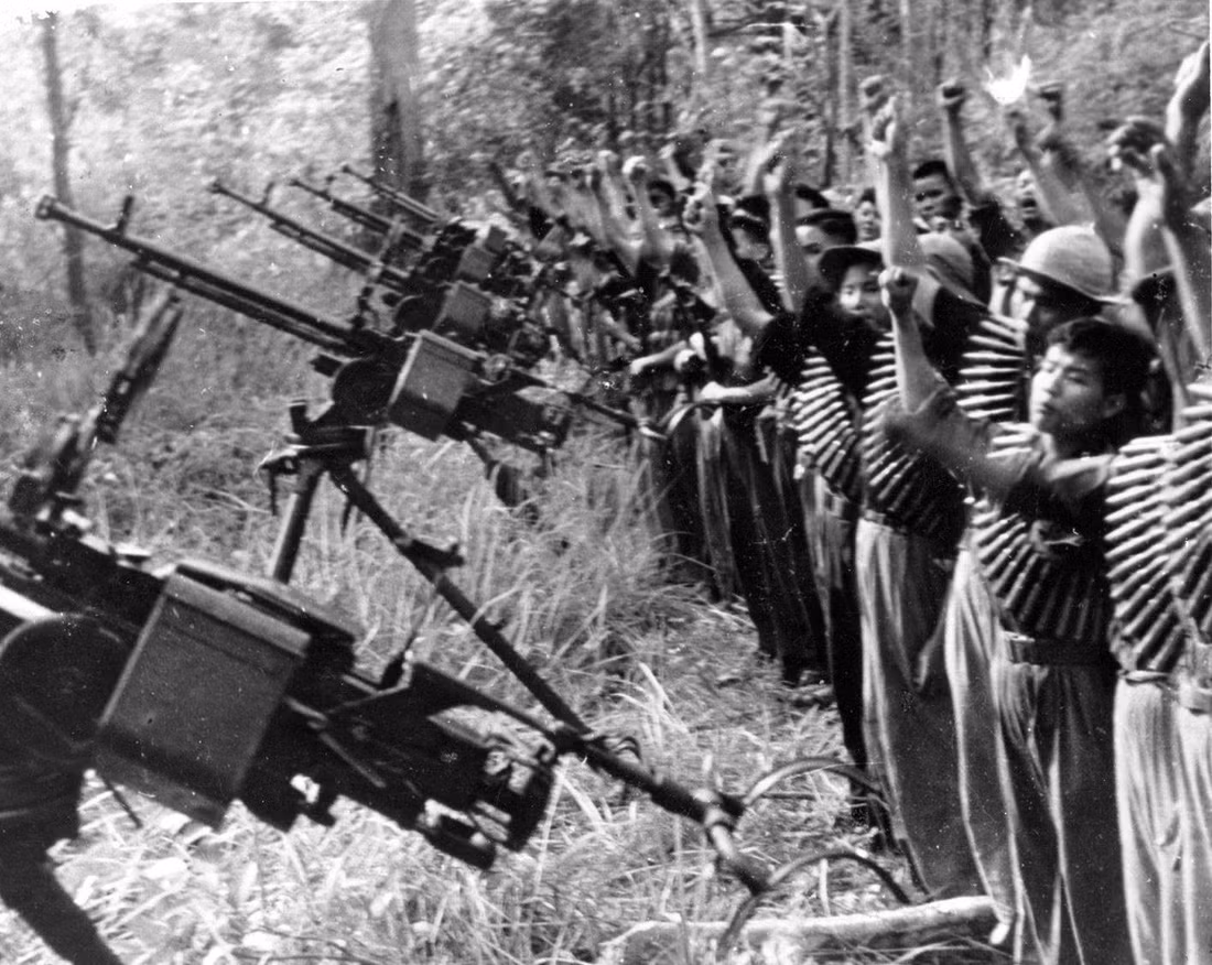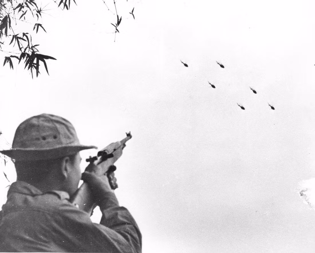 Nụ cười của lính trẻ, trên tay ôm những khẩu súng là chiến lợi phẩm sau một trận đánh vào thời kỳ năm 1968.
