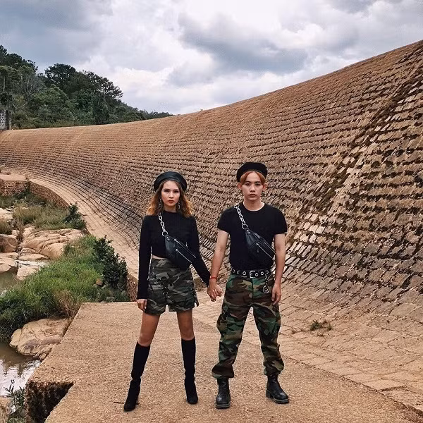 Vì là lần đầu ghé thăm Đà Lạt nên cả hai lựa chọn di chuyển bằng xe máy để tiện ngắm nghía phong cảnh và dừng lại nếu thích. Và mỗi khi đặt chân đến từng địa danh, đôi bạn thân lại có những bức ảnh 'sống ảo' cực chất nhờ concept rằn ri 'Hậu duệ mặt trời' đã chuẩn bị từ trước.