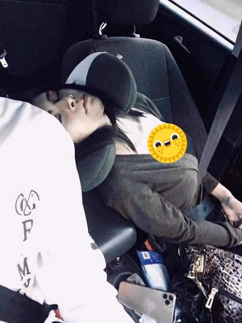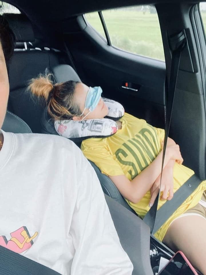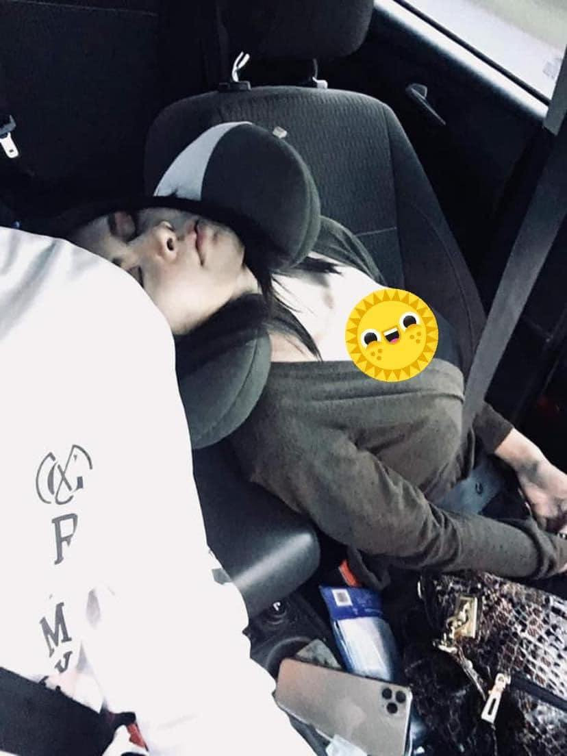 Quan sát hình ảnh có thể thấy, khi đang ngồi trên xe cô gái này mặc định sẽ bị say xe, đồng thời nằm lăn ra ngủ vật vã khiến chàng trai phải lôi điện thoại chụp lại.