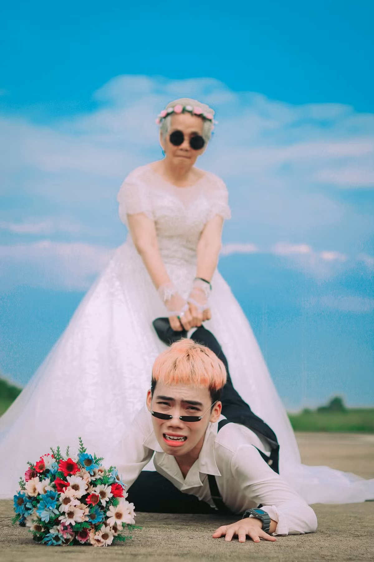 Bộ ảnh "Nội tôi mặc váy cưới" mới đây lại gây sốt trên MXH khiến netizen thích thú với hình ảnh người bà mặc váy cưới trắng, bên cạnh cháu trai trong vai phù rể.