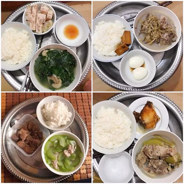 Hình ảnh những mâm cơm cữ của ông bố chồng này khiến ai cũng phải xuýt xoa khen ngợi bởi tươm tất, đầy đủ, đa dạng các món, ít ngày nào trùng ngày nào. Bên cạnh đó, ông cũng thể hiện kinh nghiệm khi lựa chọn toàn món tốt cho mẹ sau sinh như rau ngót, bí đỏ, chân giò...