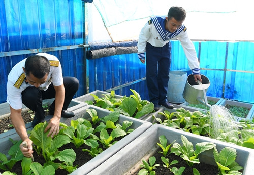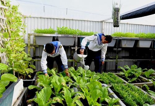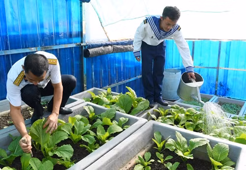 Trong điều kiện vô cùng khó khăn, thời tiết khắc nghiệt giữa biển khơi quanh năm chỉ có nắng, gió nhưng cán bộ, chiến sĩ trên quần đảo Trường Sa (tỉnh Khánh Hòa) đã chủ động được khá nhiều thực phẩm và rau xanh để nâng cao đời sống.