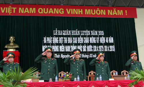 Các đơn vị Quân khu 1 tổ chức diễu duyệt đội ngũ oai hùng, trang nghiêm trong lễ ra quân huấn luyện năm 2015.