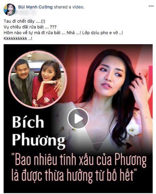 Không những vậy, trên trang cá nhân bố Bích Phương ủng hộ con gái bằng cách thay ảnh đại diện và đăng loạt status "khó đỡ". Nhiều người không nhịn được cười trước "truyền thống" lầy lội của gia đình ca sĩ Bích Phương.