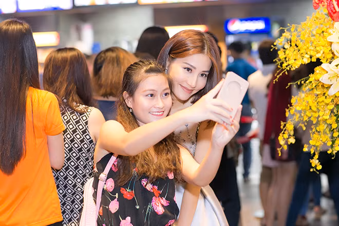 Cô nàng đầy thân thiện chụp ảnh kỉ niệm với người hâm mộ.