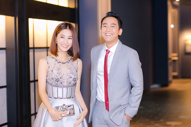 Diễm My 9x diện trang phục ton-sur-ton cùng Hứa Vĩ Văn đi sự kiện. Cùng với đó là cử chỉ thân mật mà Diễm My dành cho "soái ca".