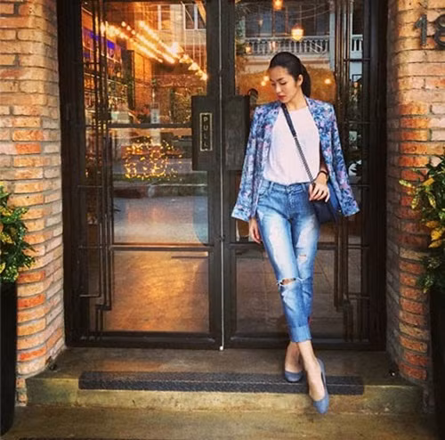 | "Bà mẹ 1 con" sành điệu trong bộ trang phục trẻ trung, cá tính. |