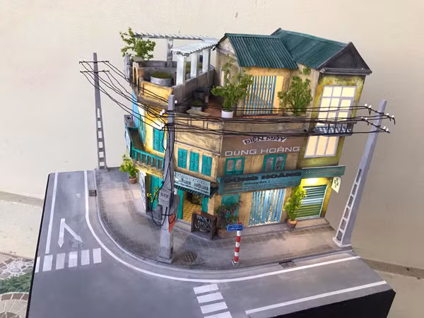 Mô hình đầu tiên anh làm là "Ngoại tôi", mô tả lại ngôi nhà của bà ngoại anh.