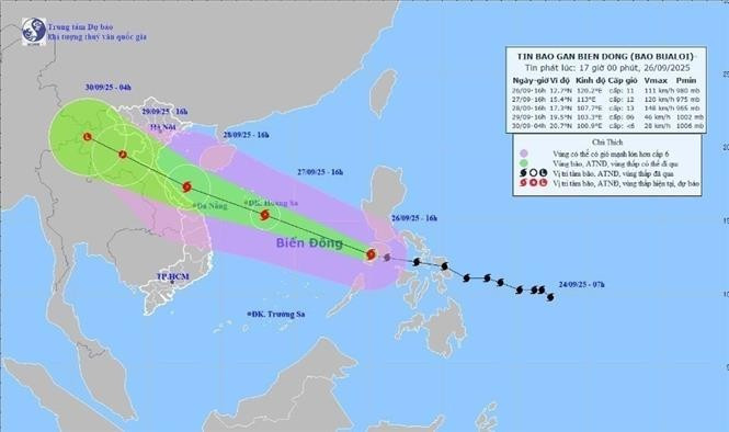 Hướng di chuyển của bão Bualoi lúc 17h ngày 26/9. Ảnh: TT Dự báo Khí tượng thủy văn quốc gia.