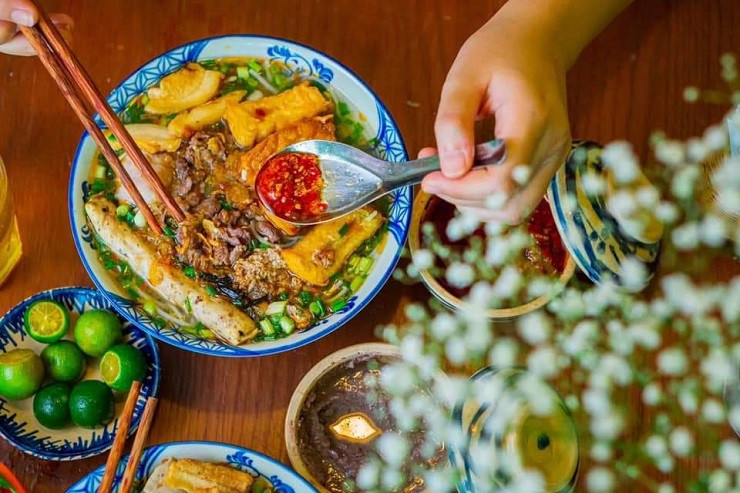 “Thông thường thì khoảng 60 nghìn đồng nhưng ra Tết quán tăng lên 70 nghìn đồng/bát đầy đủ. Bát bún riêu bình thường đã ngon rồi nhưng thêm thịt bò, giò tai, giò sụn, đậu chiên, trứng vịt lộn… lại càng thêm ngậy, thơm. Mặc dù giá hơi “chát” và phải chờ rất lâu mới được ăn nhưng bưng bát bún đầy ú ụ với mùi thơm phức thì cũng xứng đáng”, anh Hiếu nói.
