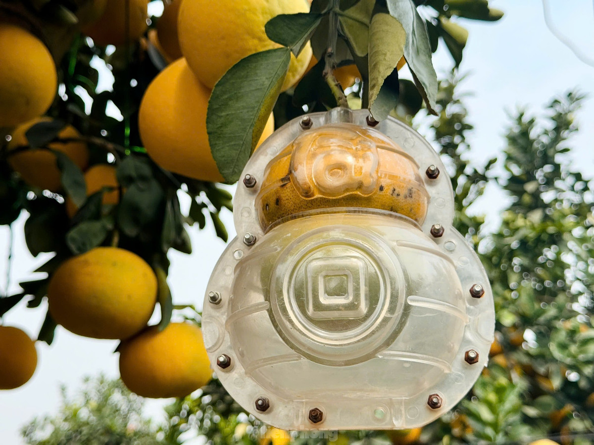 Anh Lý Văn Đôi (Văn Giang, Hưng Yên) đã đúc chậu bưởi bằng xi măng, sau đó tạo hình trông giống chiếc phi thuyền. Sản phẩm được chủ nhà vườn rao bán với giá từ 160- 200 triệu đồng