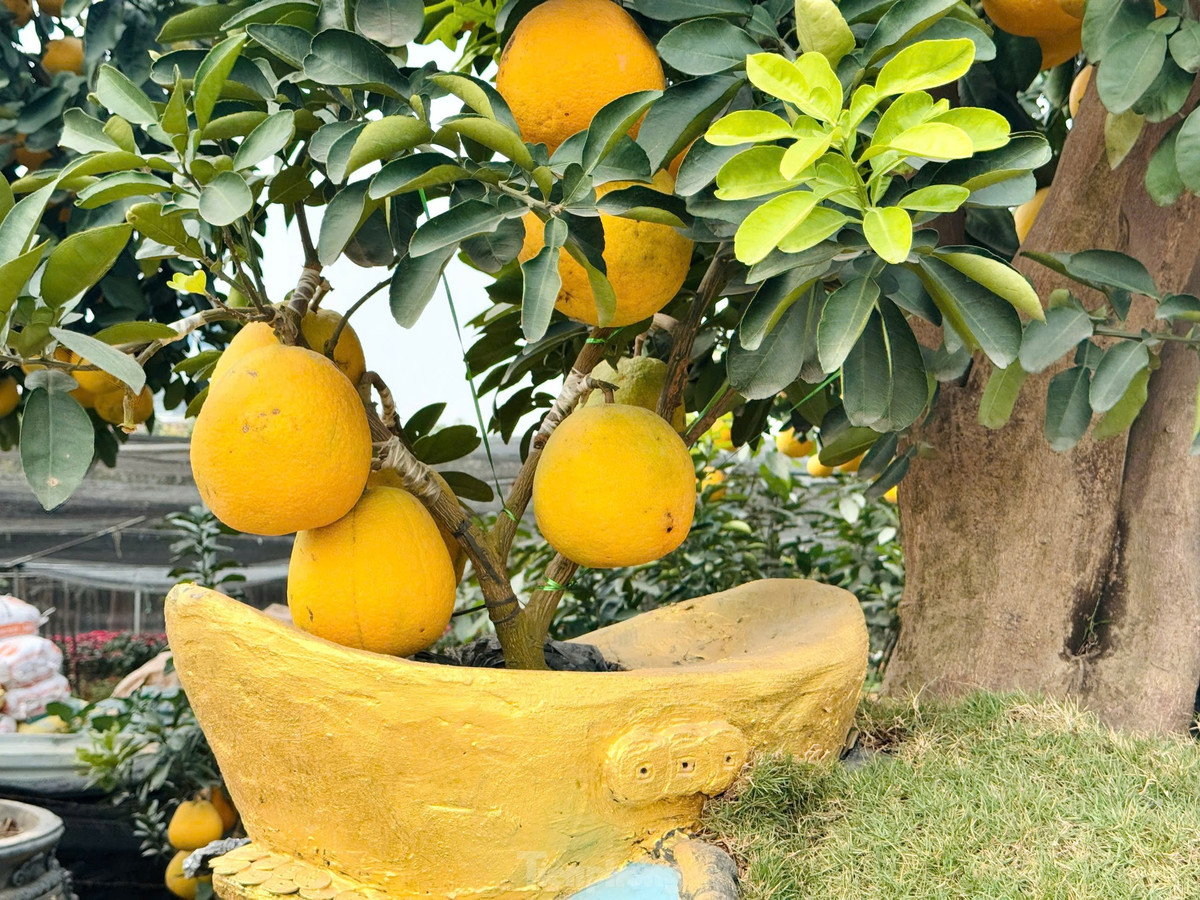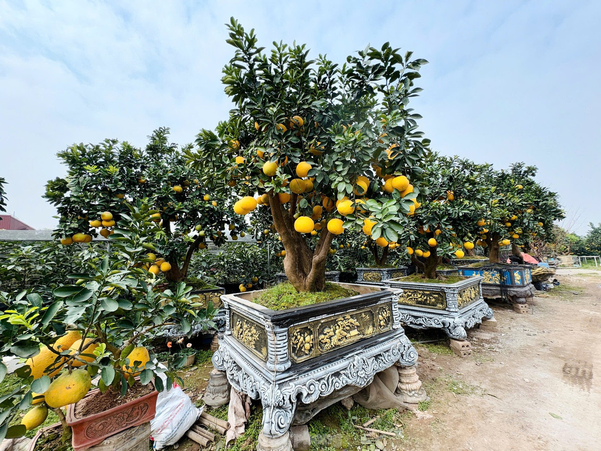 Một số nhà vườn ở Hưng Yên đã tạo dáng những chiếc chậu bưởi khổng lồ, nhiều hình thù để chuẩn bị chào bán dịp Tết Nguyên đán 2025. Mỗi sản phẩm được rao bán với giá từ 160-200 triệu đồng.