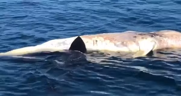 Con cá mập trắng lớn dài tới 5m, là một trong những con cá mập trắng khổng lồ rất hiếm ít được bắt gặp. Con cá voi chết thảm chưa rõ nguyên nhân dài khoảng 9m và là một con cá voi vị thành niên.