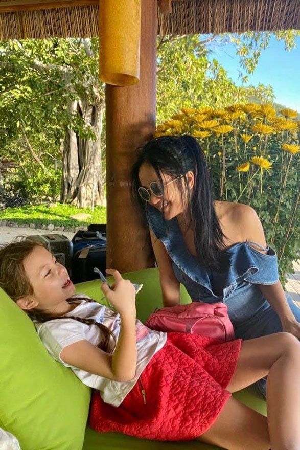 Cô thường xuyên đăng tải những hình ảnh vui vẻ khi dành nhiều thời gian đi chơi, nghỉ dưỡng cùng các con và những người bạn bè thân thiết khắp nơi.
