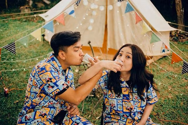 "Lần 1: cầu hôn tại nhà hàng cao nhất Sài Gòn – miệng run giựt giựt – ánh mắt long lanh nói : ” em làm chồng anh nha “ Lần 2: cầu hôn tại Dallas- The Fuji , ánh mắt long lanh hơn – tim đập muốn lọt ra ngoài anh ấy nói : ” em lấy anh làm vợ nha “ Cầu hôn 2 lần vẫn nói lộn……….. Rốt cuộc là tui đã có vợ chứ không hề lấy chồng nha hôn . Số phận đã an bài” – MiA chia sẻ dòng trạng thái lầy lội cùng ông xã của mình. Chia sẻ của MiA khiến cư dân mạng phải bật cười về màn cầu hôn "có một không hai" của cặp đôi.