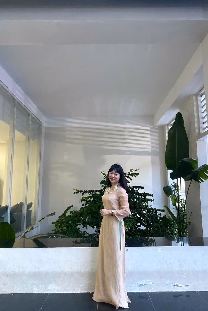 Diện áo dài dịu dàng. (Ảnh: Nhật Hà)