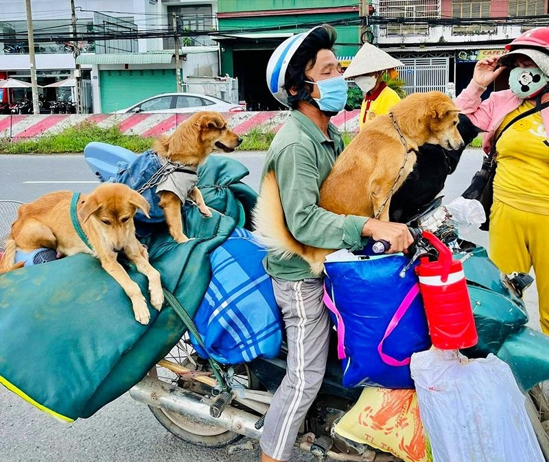 Bằng nhiều hình thức, nhiều phương tiện, các thú cưng được các "con sen" đưa về nhà ăn Tết.