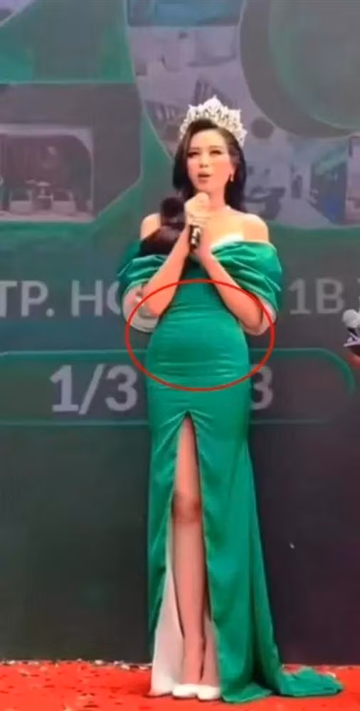 Trước đó, người đẹp xứ Thanh liên tục lộ vòng 2 mỡ thừa kém xuất sắc, đặc biệt khi diện trang phục bó sát chất liệu bóng.