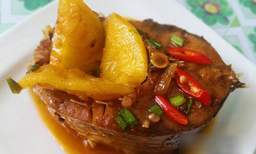 - Hỗn hợp gia vị sôi, cho thịt vào xào sơ rồi cho cá vào nấu sôi, nêm nếm lại tuỳ khẩu vị.