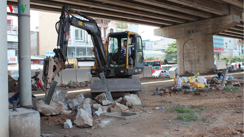 Một công nhân cho hay: "Bên trong đổ đất nên việc thi công bốc tách khá dễ dàng".