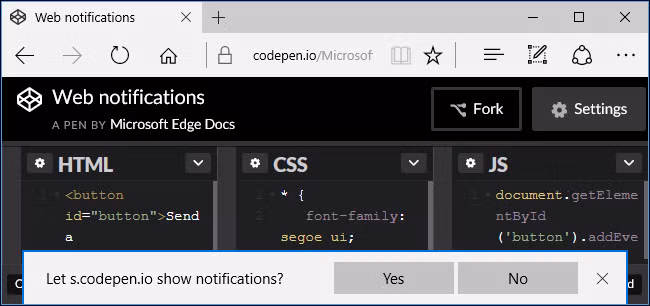 Từ bản cập nhật Windows 10 Anniversary thì trình duyệt Microsoft Edge đã hỗ trợ hiện thông báo từ website. Tuy nhiên, Microsoft không cho người dùng chặn pop-up hỏi quyền hiện thông báo từ chúng.