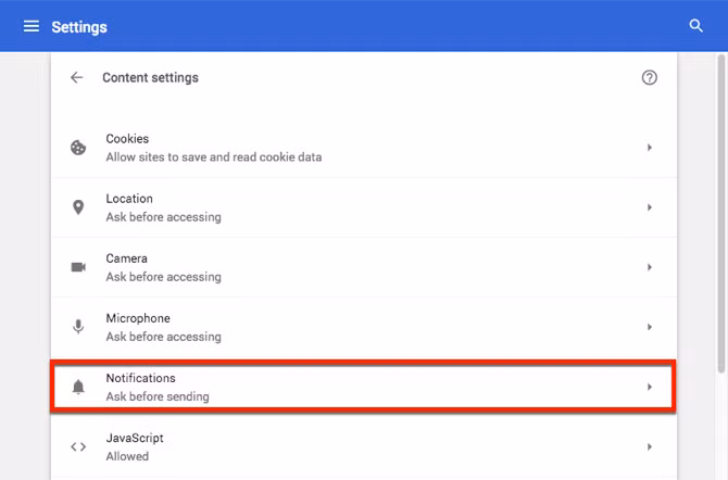 Tiếp theo, chọn Notifications.