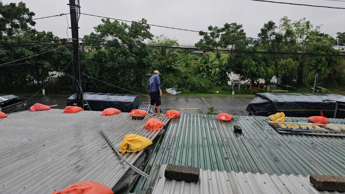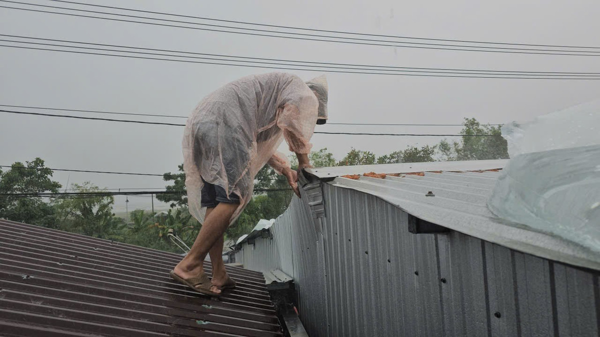 Trước mùa mưa bão, người dân mua sẵn túi nhựa dày, dung tích khoảng 50 lít, sau đó dẫn nước máy trực tiếp lên mái, bơm đầy rồi đặt ở vị trí cố định. Những “túi nước” trở thành vật giằng giữ mái tôn thay thế cho .
