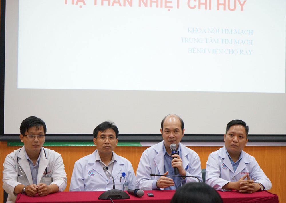 Các bác sĩ Khoa Nội Tim mạch, Bệnh viện Chợ Rẫy chia sẻ về kỹ thuật hạ thân nhiệt chỉ huy. Ảnh: Kim Vân