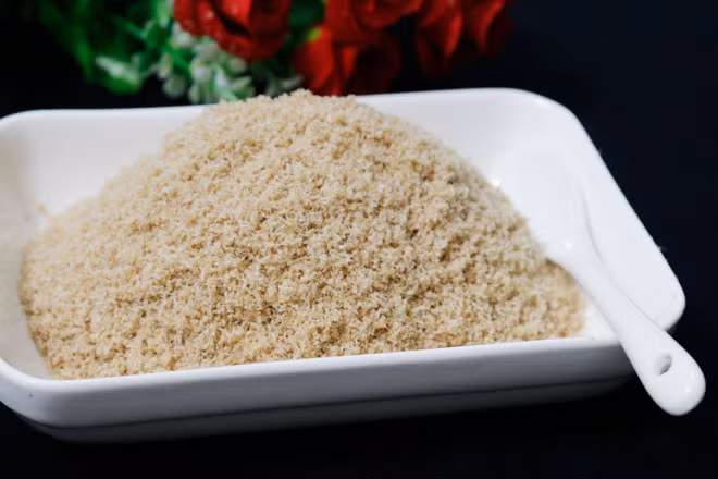 - Bước 7: Đặt 1 miếng giấy nến lên bàn sau đó bạn đổ hạt nêm lược qua rây để lấy hỗn hợp bột nhỏ mịn, phần bột to không lọt qua rây bạn nên cho vào máy xay lại lần 2 và lược qua rây lần nữa là xong.