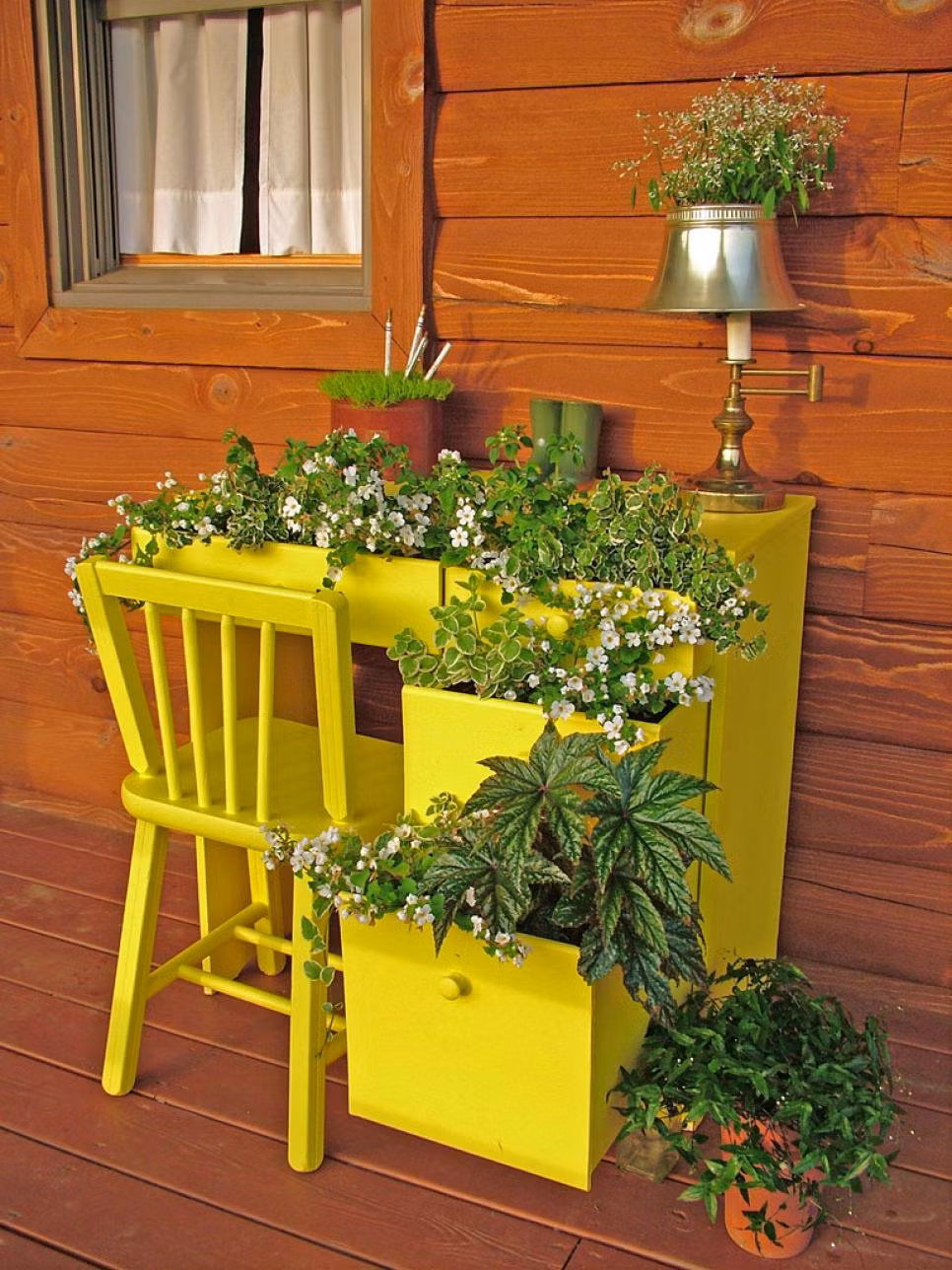Những chậu hoa tái chế từ vật dụng cũ vừa giúp bạn "tô điểm" ngôi nhà đẹp, vừa tiết kiệm được chi phí mua đồ trang trí.