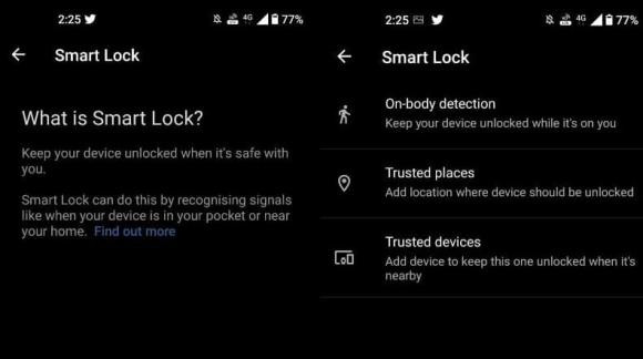 Smart Lock là một tính năng bảo mật, cho phép người dùng mở khóa bằng các cơ chế khác nhau như hình ảnh, cử chỉ, thiết bị ngoại vi… Để bật tính năng này, hãy vào Cài đặt, chọn mục Bảo mật và tìm kích hoạt chế độ Tác nhân đáng tin cậy.