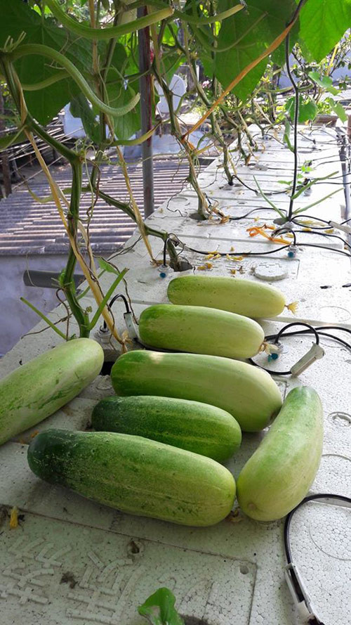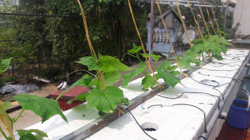 Với bồn chứa 150 - 250 lít nước sẽ cung ứng đủ nước cho 20 - 25 thùng xốp. Anh Vỹ cho biết, giá thể trong thủy canh gồm tro trấu trộn với xơ dừa hoặc mùn cưa. Đặc biệt, trồng rau cần có mái che mưa để tránh hiện tượng dập nát, nhiễm bệnh. Nếu làm giàn, phải có nắp đậy hộp xốp và khoét lỗ cho cây lên. Khi cây ra quả, anh Vỹ tìm cách diệt ruồi, ong chám quả. Bên cạnh đó, anh Vỹ thường xuyên kiểm tra nồng độ dung dịch đảm bảo dinh dưỡng cho cây.